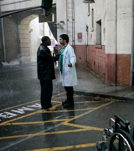 A MYSTERIOUS ILLNESS LEAVES LITTLE HOPE: Abby (Maura Tierney) and Kovac (Goran Visnjic) argue about a diagnosis when a woman comes into the ER with signs of spousal abuse.